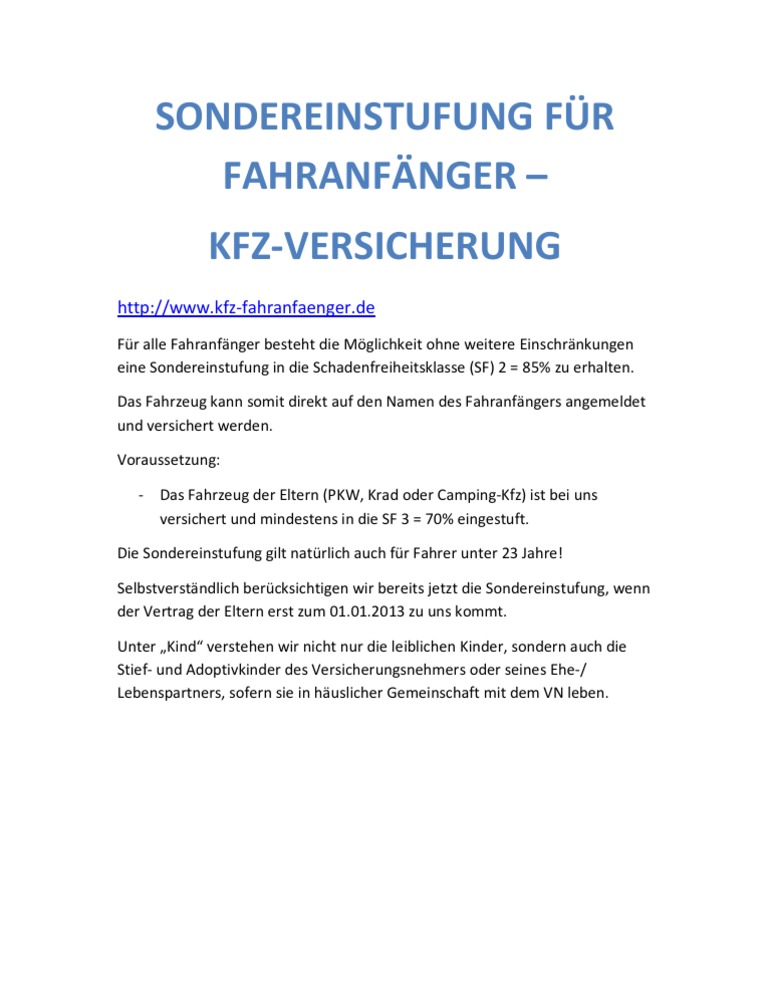 Sondereinstufung Fur Fahranfanger